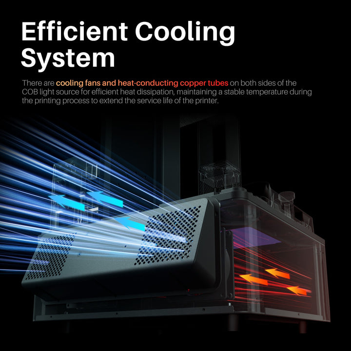Miedziane przewody i wentylatory zapewniają stabilność temperatury i długą żywotność drukarki. -