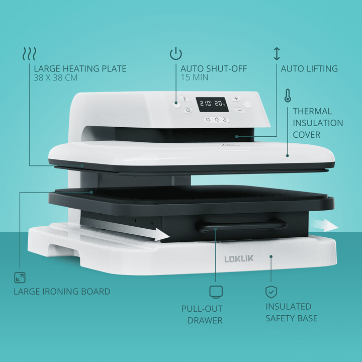 Uwolnij swoją kreatywność z LOKLiK Auto Heat Press! To innowacyjne urządzenie pozwala łatwo nakładać transfery cieplne na wszystkie Twoje ulubione tkaniny. Idealne do personalizacji koszulek, toreb i wielu innych. Niezależnie od tego, jaki produkt chcesz zaprojektować, dzięki czterem trybom wstępnym, dwóm ustawieniom niestandardowym lub trybowi automatycznemu do produkcji seryjnej zawsze znajdziesz odpowiednie ustawienia. LOKLiK Auto Heat Press gwarantuje imponujące rezultaty przy minimalnym wysiłku.