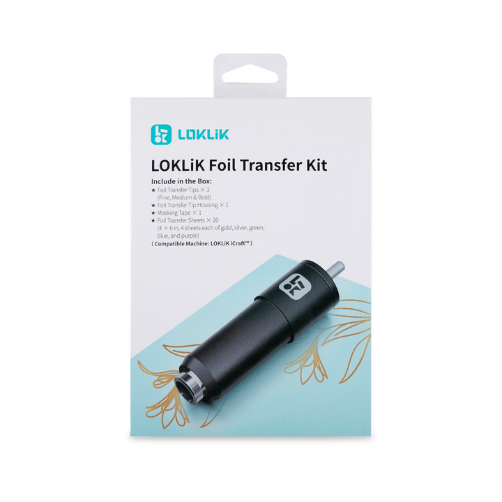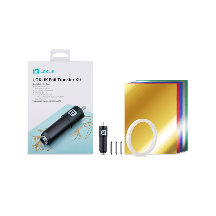 LOKLiK iCraft™ Zestaw do Transferu Folii – kompletny zestaw do eleganckich efektów metalicznych na kartach, zaproszeniach, pudełkach i kreatywnych projektach DIY. Dzięki wymiennym końcówkom i kolorowym foliom transferowym można tworzyć zarówno delikatne detale, jak i wyraziste akcenty.