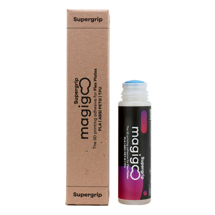 Magigoo Supergrip został specjalnie opracowany dla elastycznych i polimerowych powierzchni drukujących. W przeciwieństwie do tradycyjnych klejów, unikalny skład zapewnia równomierne rozprowadzenie kleju i skuteczne przyleganie do gładkich oraz strukturalnych powłok, bez łuszczenia się czy utraty skuteczności z czasem.