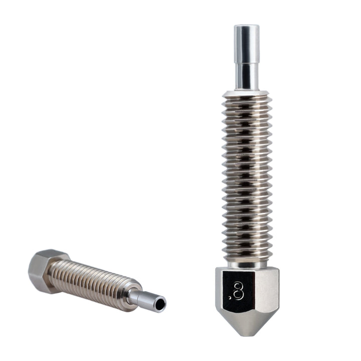 Dysza FlowTech łączy dyszę i rurkę grzewczą w jednej jednostce, eliminując typowe problemy, takie jak nieszczelności czy skomplikowana wymiana dyszy. Mosiężna powłoka zwiększa odporność na zużycie i zapewnia równomierny przepływ materiału przy wysokich prędkościach druku.