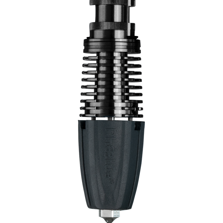Śruby ze stopu tytanu o niskiej przewodności cieplnej tworzą sztywną łączność między blokiem grzewczym a radiatorem. Ta sztywna konstrukcja umożliwia wygodną, jednoręczną wymianę dyszy.