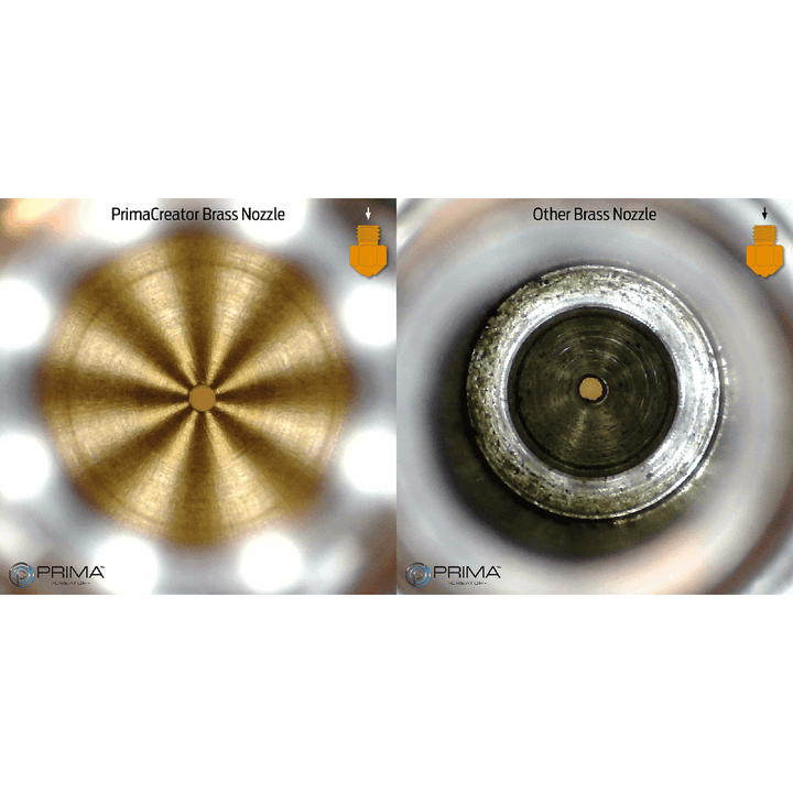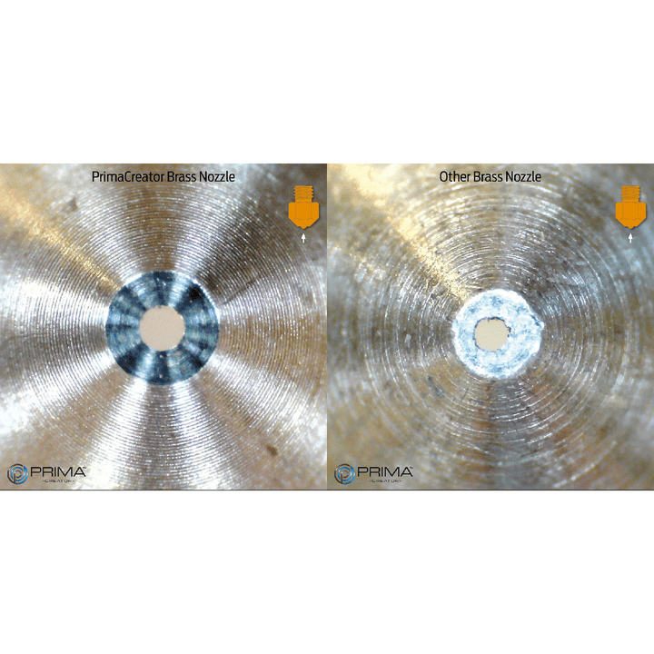 Wszystkie dysze PrimaCreator wykonane są z wysokiej jakości mosiądzu lub stali (w zależności od typu) i produkowane w nowoczesnej fabryce. Tolerancja wynosi mniej niż ± 0,01 mm. Zapewnia to, że Twój filament podczas ekstruzji ma bardzo gładką i czystą powierzchnię, co oczywiście przekłada się na lepsze wyniki druku.