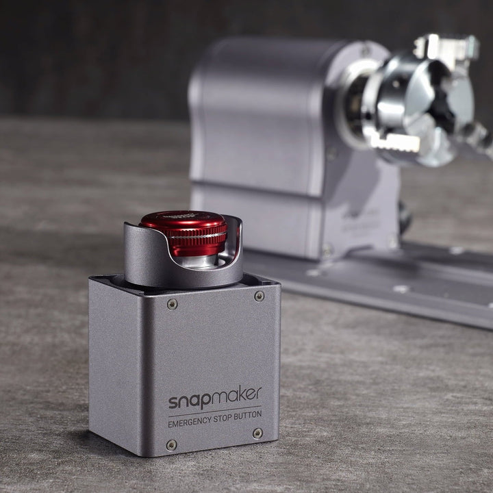 Wyłącznik awaryjny Snapmaker 2.0 zapewnia maksymalne bezpieczeństwo podczas drukowania 3D, grawerowania laserowego i frezowania CNC. Jedno proste naciśnięcie natychmiast zatrzymuje wszystkie ruchy maszyny – idealne, gdy coś pójdzie nie tak lub chcesz chronić swój przedmiot.